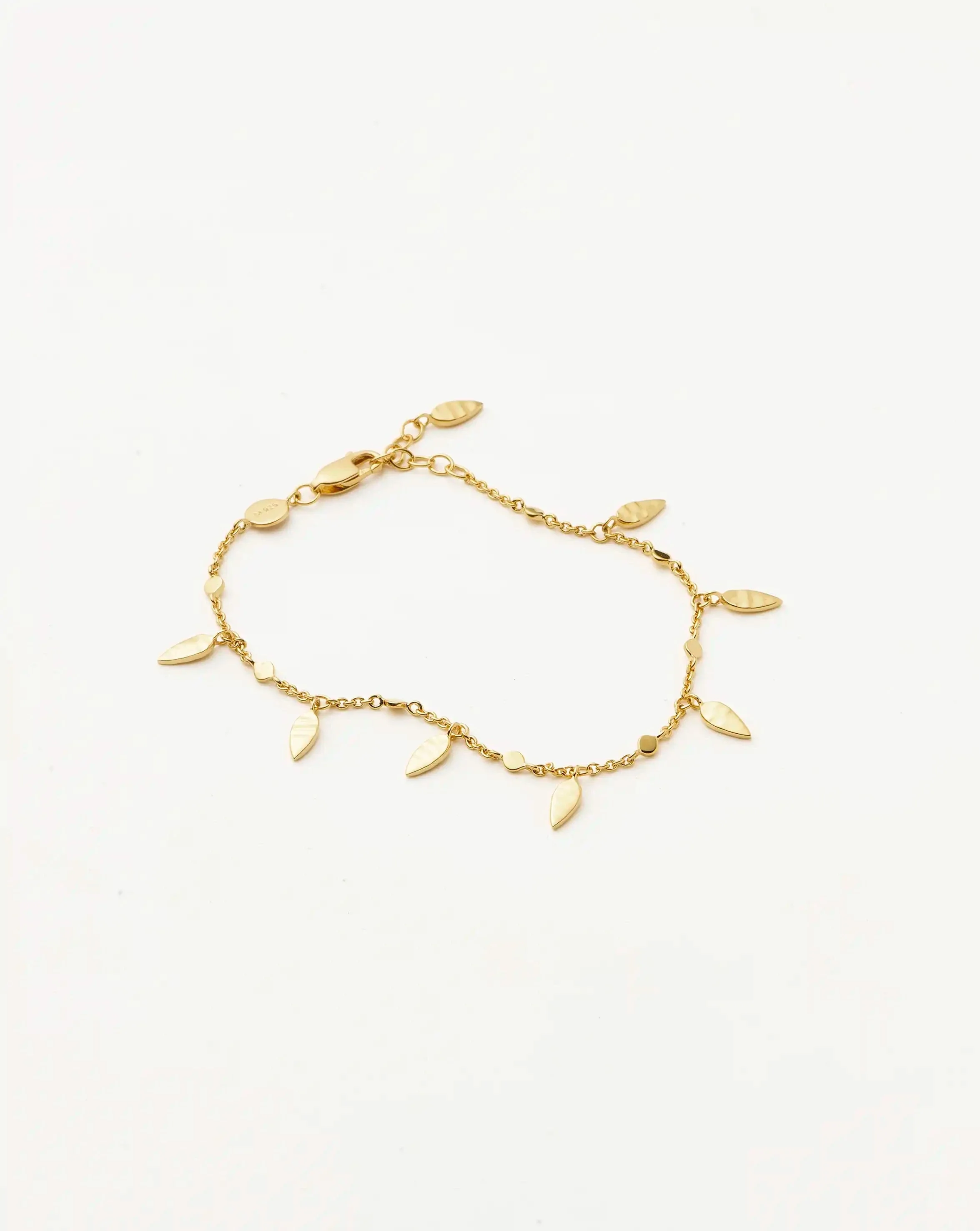A best selling layering piece. Featuring leaf charms with a hammered finish, this distinctive bracelet is the ultimate upgrade for your arm stack. Let it shine solo or team with our cuffs and chains for a more impactful look.